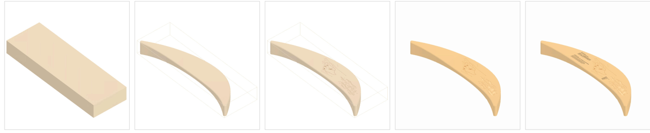 We took those, vectorised them and modelled them in a bas-relief style, respecting precisely the depth and resolution of what the 2D carving machine can achieve.