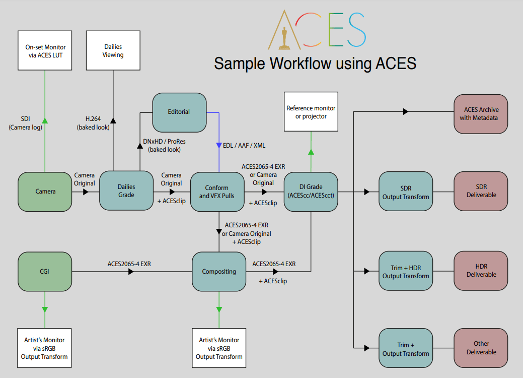 Bear in mind, you do NOT necessarily need all of those. Cherry pick what you need only. More on this in the conclusion. But if you want to be confused, here is what a hardcore full ACES workflow looks like: